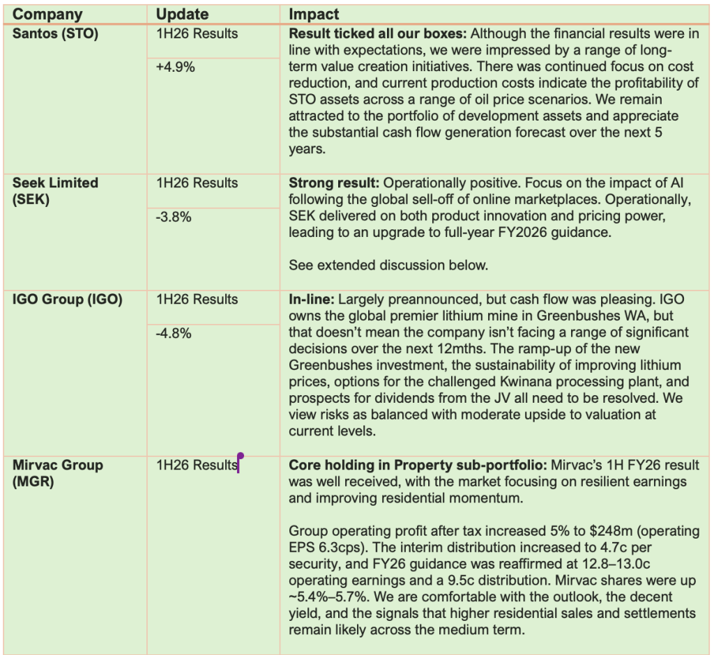 Week 2 Company reporting season – Portfolio results*** Part 2