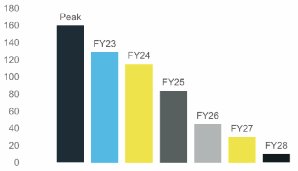 The figure below shows Barrenjoey Research’s estimates of gearing from 2022 through to the 2027 forecast. We share their view. Net debt is presented as a multiple of operating cash flows (Net Debt / EBITDA). We believe that RWC can have debt levels at circa 2.5x EBITDA, at the top end of the Target Range. Given that leverage is expected to fall below 1x in FY27, the company has a large war chest for future acquisitions.