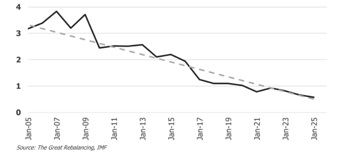 So if 2017 didn’t represent the nadir of capital efficiency, then who is to say that 2025 is any closer, what is clear however in 2025 is that competitive mercantilism, declining global institutional strength, and rapidly falling population have now joined the chorus.
