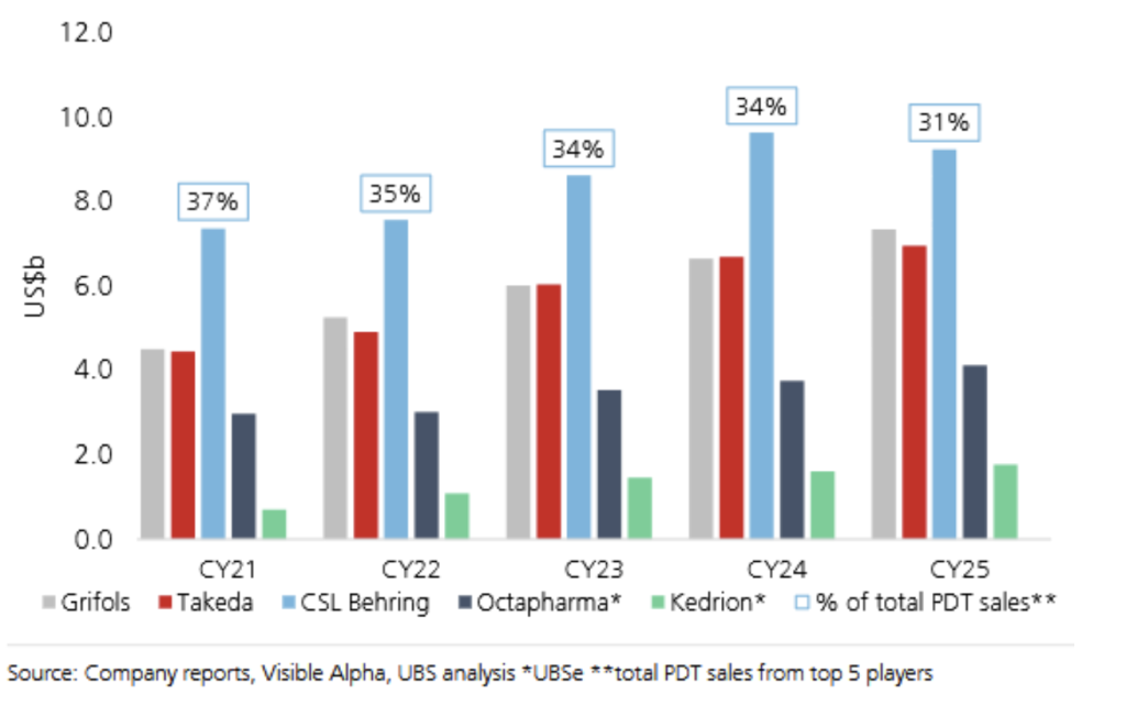 Figure 4: Plasma-derived therapy sales US$bn – 2021–2025 (UBS Research)