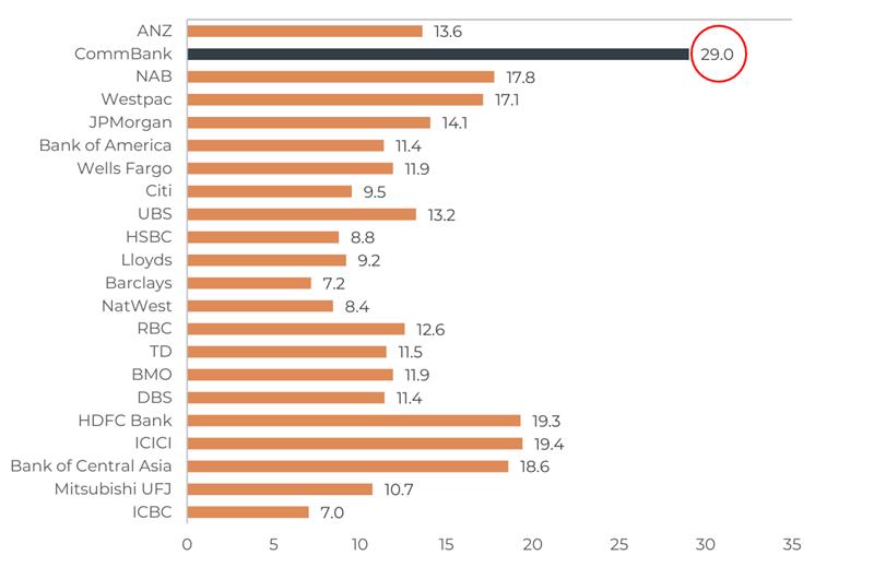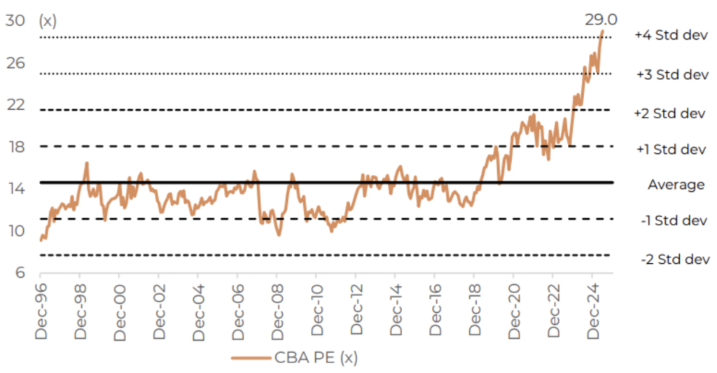 In the case of CBA, that price was reached in 2024, not just in June 2025. But “no price is too high” has led to CBA being the most expensive developed market bank (in terms of earnings) ever.