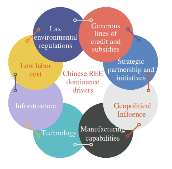 A journal article titled Rechttps://inldigitallibrary.inl.gov/sites/sti/sti/Sort_57446.pdfent advances in the global rare-earth supply chain, MRS Bulletin (Materials Research Society) published in 2022, provided a clear diagram of the way in which China has created a concentration of supply.