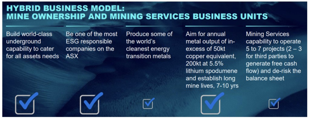 The figure below outlines the plan to leverage mining services to build and own underground mining assets. All the while using cash flow to avoid share dilution and create wealth for early investors.