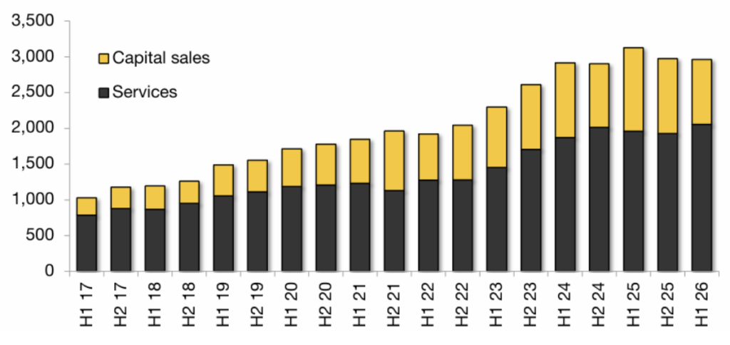 At WesTrac, the dealer of Caterpillar in WA/NSW, the structural strength of its maintenance services revenue continues to dominate earnings quality.