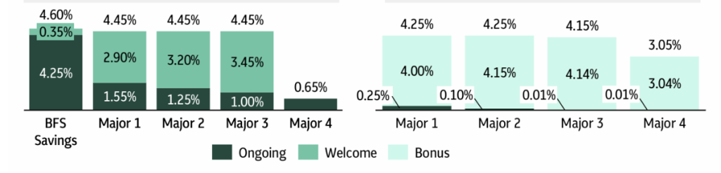 The following figure compares Macquarie Bank’s retail offering for standard savings accounts. The change at MQG isn’t solely driven by competitive forces, whereby Macquarie is looking to increase its domestic funding; the lead they are developing is fundamentally structural and technological.