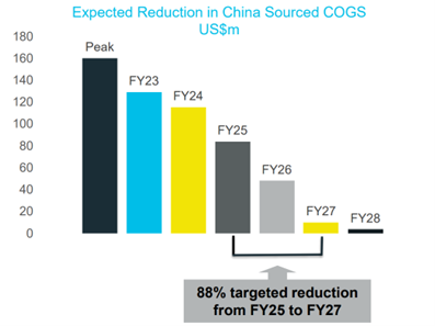The company isn’t standing still regarding the external risks the business faces in its supply chains. We were particularly impressed by one slide in the FY25 presentation. We have replicated this in the figure below. The figure illustrates how rapidly the company has relocated its supply chain away from China to mitigate the impact of tariffs and geopolitical risks.