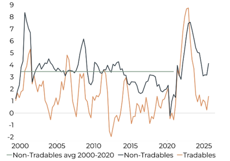 This is critical because non-tradables represent the most domestically driven component of inflation, are deeply connected to labour market conditions, administered prices, and sectoral concentration, and are the least responsive to monetary easing.