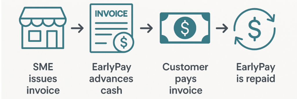 As a reminder, Invoice Finance is where EarlyPay advances cash against a business’s unpaid invoices. Instead of waiting 30–90 days for customers to pay, SMEs can unlock immediate cash flow. This helps cover wages, supplier payments, or growth opportunities.