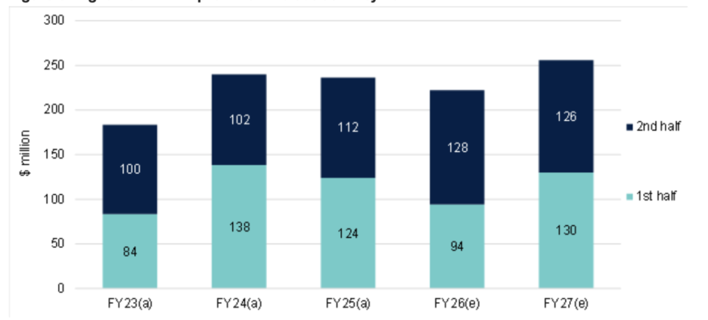 Figure 6: Inghams EBITDA pre AASB-16 outlook – by half