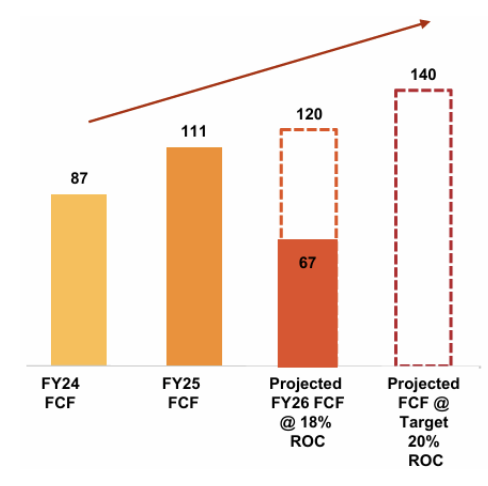 The figure below shows the buildup in cash flow over the past 2 years, and the possible growth going forward if ROIC targets are met.