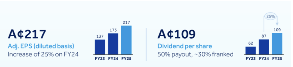 The company reported a statutory net profit after tax of $2,157 million, up from $1,779 million in FY24. The company also announced a final dividend of 78 Australian cents per share and a A$450 million on-market share buyback. The results beat market expectations for FY25 and lay the groundwork for earnings growth in FY26.