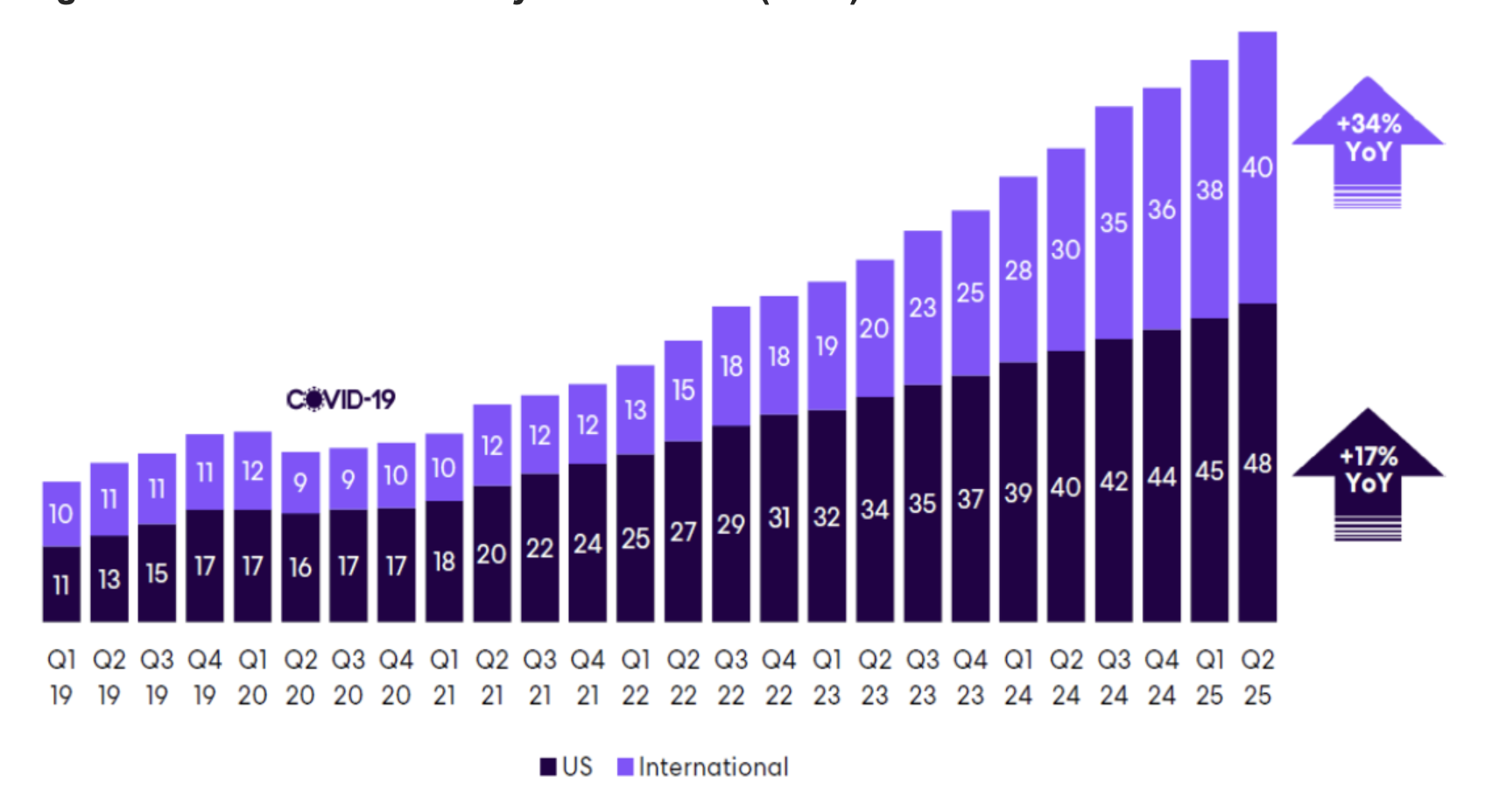 - Monthly active users (MAUs) surged by 25% year-over-year, reaching 88 million, up from approximately 70 million in Q2 2024.