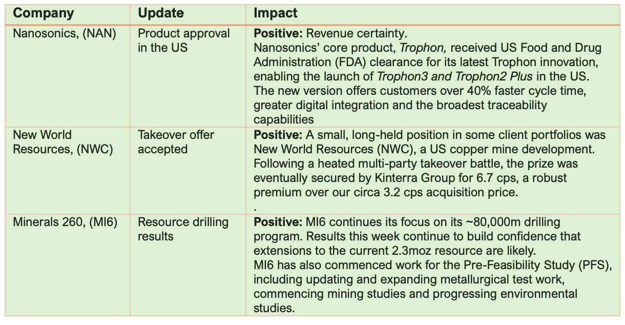 There was a small number of noteworthy, smaller and new items in the portfolio outlined in the table below.