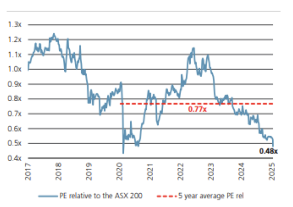 This leaves the stock trading at a significant discount of ~50% to the broader ASX200 PE multiple, itself the low end of the historical range for which the stock has traded in the past 20 years.