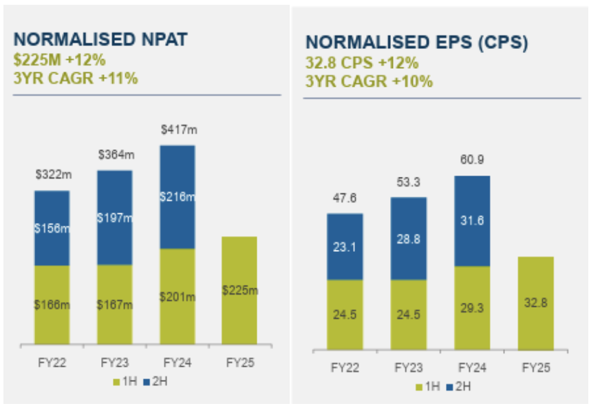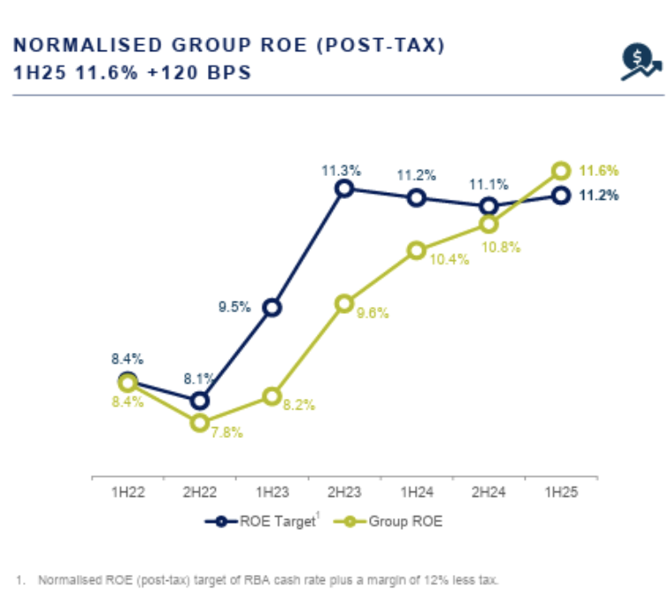 Significantly, returns generated on shareholders’ capital have been improving and are well above the cost of capital. The recent 1H25 result also saw the company meet its stated target ROE of the RBA cash rate plus 7% for the first time in 3 years.