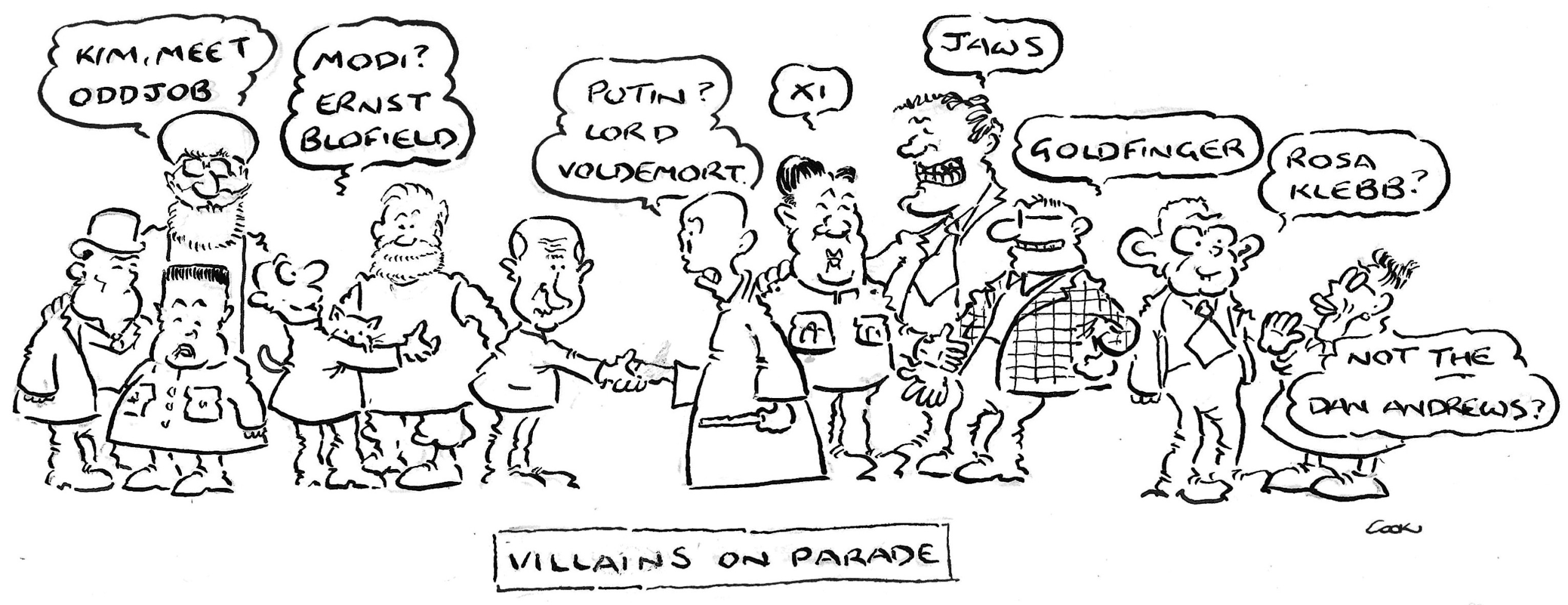 But the temptation of relevance was too great for him. As Mrs. Dan added a couple of spare black North Face puffer jackets to his carry-on luggage, he justifyingly cried, “Imagine me not only being in the company of past, present and emerging megalomaniacs but also to have the photo to prove I was really one of them.”