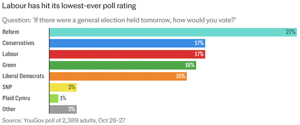 Sir Keir Starmer’s UK Labour government is only marginally more popular than Prince Andrew, as it slumps to its worst poll on record. And, like the twelfth of never, that’s a long time.