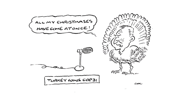 As part of the deal to avoid the $2bn cost of running the next COP climate change conference in Adelaide, Uncle Albo wisely yielded to the inevitable and pulled out of the beauty parade, ensuring that Turkey got the gig.