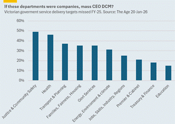But wait! There’s more. It was noted in yesterday’s Age that Auntie Jacinta’s Department of Transport and Planning (the third worst department in service delivery – see above chart) has a Plan to lift standards for tradespeople. Well, a Plan is a good start.