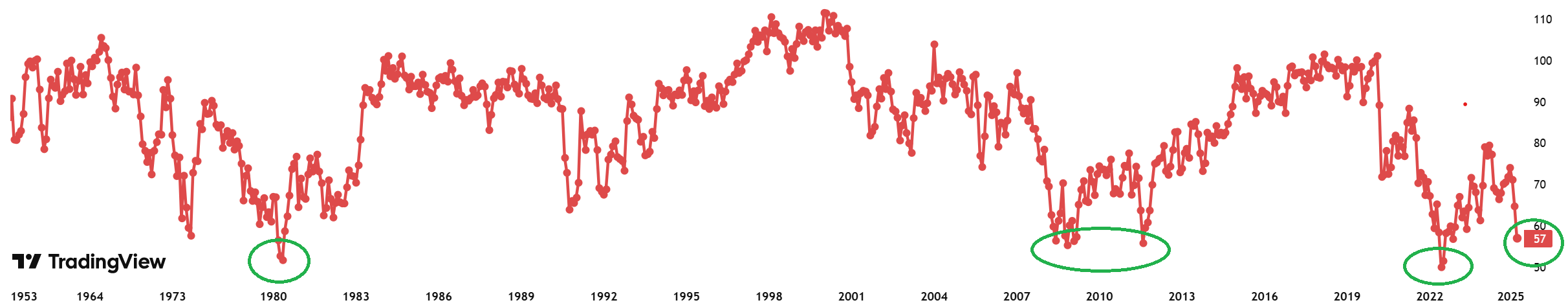 Not wishing to blame any one person… Okay. Wry & Dry will. It’s Trumpster’s fault that US Consumer Confidence Index (measured by the University of Michigan) is at its lowest since 1980, aside from covid and the GFC aftermath.