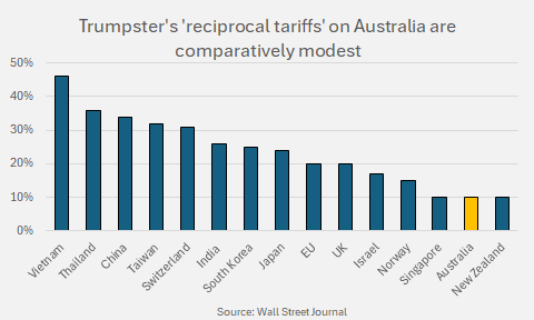 Of course, a lot of Trumpster’s tariffs are nonsense. Consider Heard Island & McDonalds Islands, sub-Antarctic territories of Australia, with zero population, has been hit with a 10% tariff. A bit hard on the penguins.