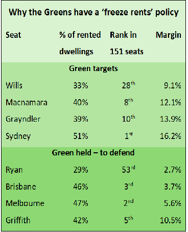 Self-interest, of course. Nothing wrong with that, this is politics. But Readers might consider the percentage of rented dwellings in Greens-held or want-to-hold seats: