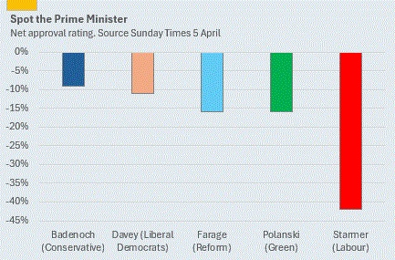 And now, who will want Starmer’s job? Well, notwithstanding the overflowing of poison in the chalice, the wannabes will be queueing up. After all, there’s three more years to overcome Starmer’s unpopularity. The below chart tells the story: