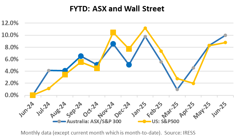 The operating economy is weak, but the share market remains strong, with total returns since June 30, 2024, of 13.5%, despite three corrections throughout the year.