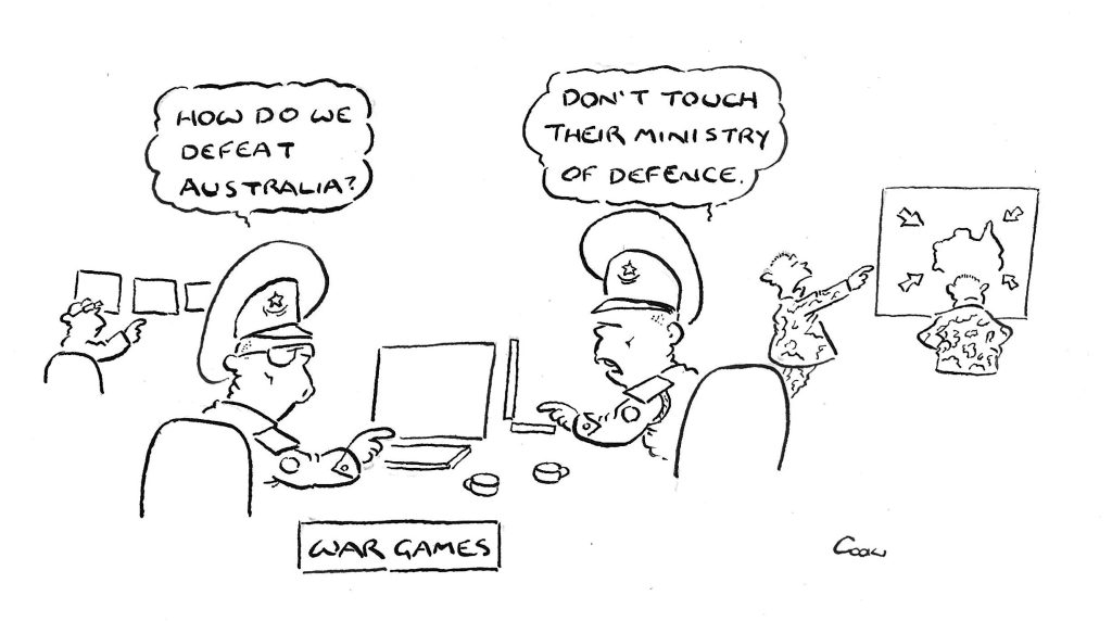 The competition regulator (ACCC) yesterday parked a tank on Qantas CEO Alan Joyce’s front lawn. And spun the turret so that the barrel was aimed at the front door. Inside, Mr. Joyce barricaded the door with sandbags filled with 24,000,000 dollar coins. Wry & Dry’s spy was there.