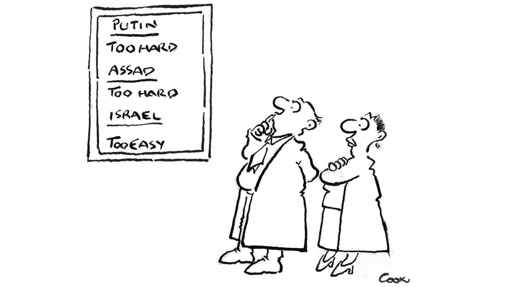 But in viewing the many responses to the escalating mess in the Middle East, Wry & Dry can only see the empty mouthing of most-worst options.